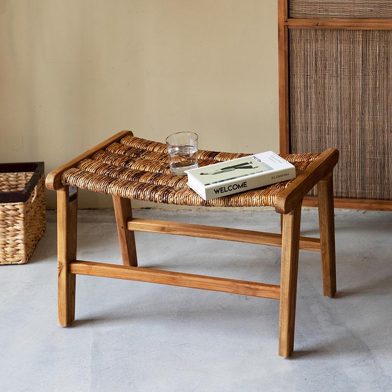 材質:回收老柚木實木、蕉麻、編織表面皆有透明塗層、抗菌處理