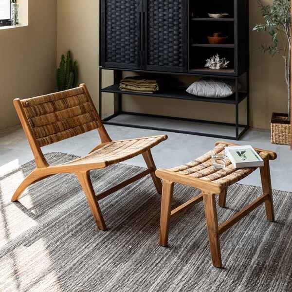 Caterpiller系列包括了許多經典設計的椅子和凳子,以實心的回收老柚木作為結構,結合由當地工匠手工編織的蕉麻纖維,在日常中優雅注入海島的度假風情。