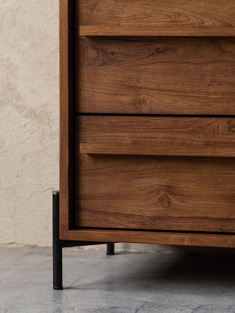 Outline的簡約美學是純粹工藝的體現,將柚木色澤與紋路樸實展示,並賦與回收的老柚木嶄新的樣貌,讓歲月的浪漫煥然一新成為永不過時的家具單品。