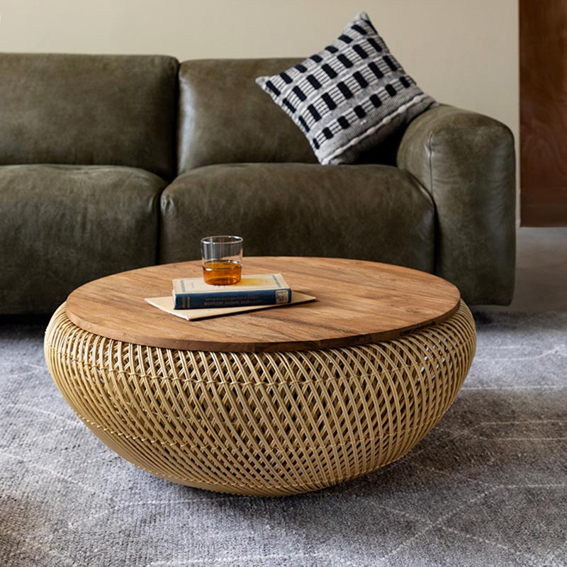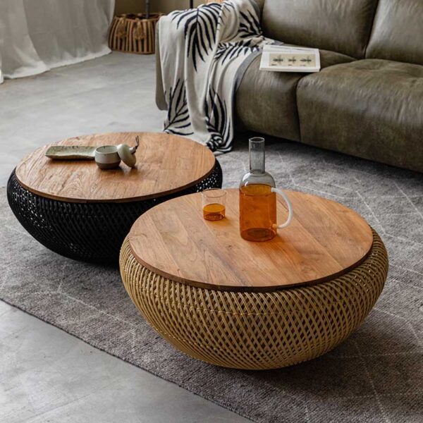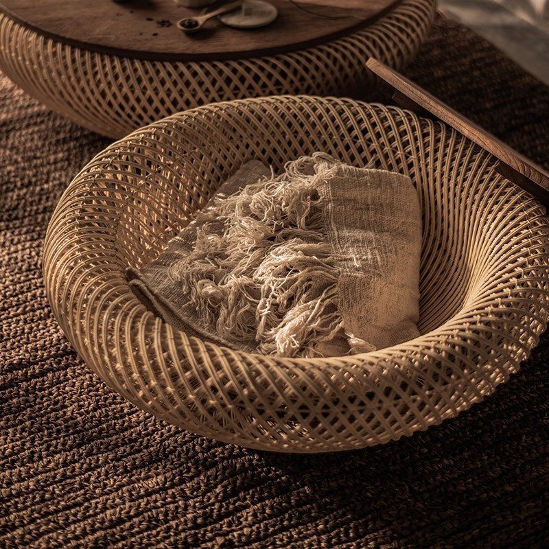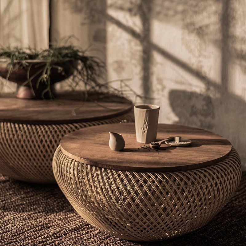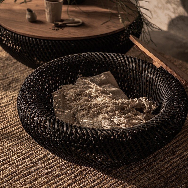 材質:回收老柚木實木、藤編底座
