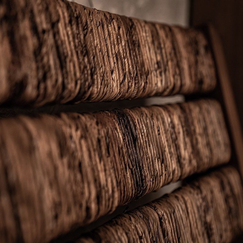 取自於葉柄中的硬質纖維,由於其生長快速又柔韌結實而被當地廣泛使用,並且因為其自然永續的特性,被聯合國稱為「未來纖維」,質樸的顏色和斑點,讓整體視覺擁有更多層次。