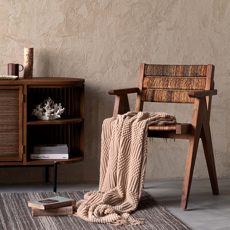 Caterpiller系列包括了許多經典設計的椅子和凳子,以實心的回收老柚木作為結構,結合由當地工匠手工編織的蕉麻纖維,在日常中優雅注入海島的度假風情。