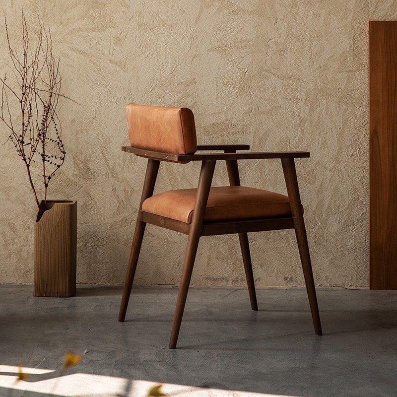 天然柚木實木皮革椅