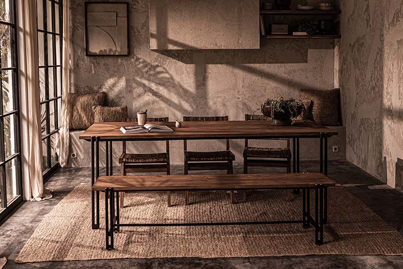 鍾情於印尼獨特文化的荷蘭設計師Raymond Davids,深深著迷於老房屋、老家具上傳統細膩的工藝技巧,以及久經風霜而刻畫出成熟、獨特木紋的老柚木,以這些充滿生命力與故事的元素,融入現代、簡潔的設計中,以繁複精巧的工序磨製,創造出質樸原野的家具系列。
