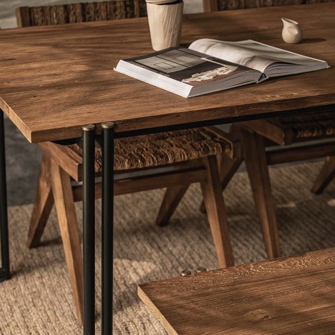 天然老柚木實木餐桌