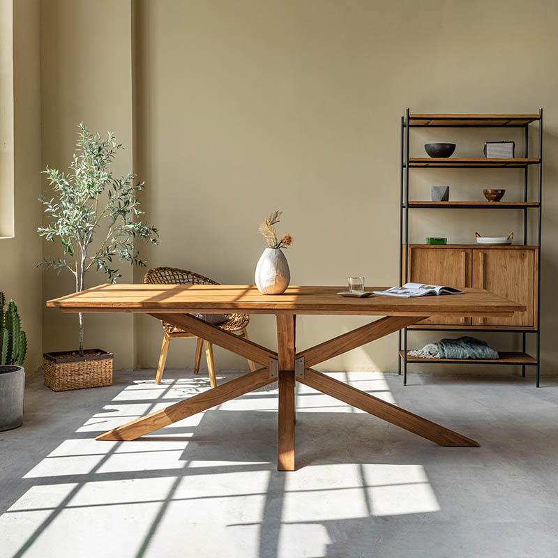 天然老柚木實木餐桌