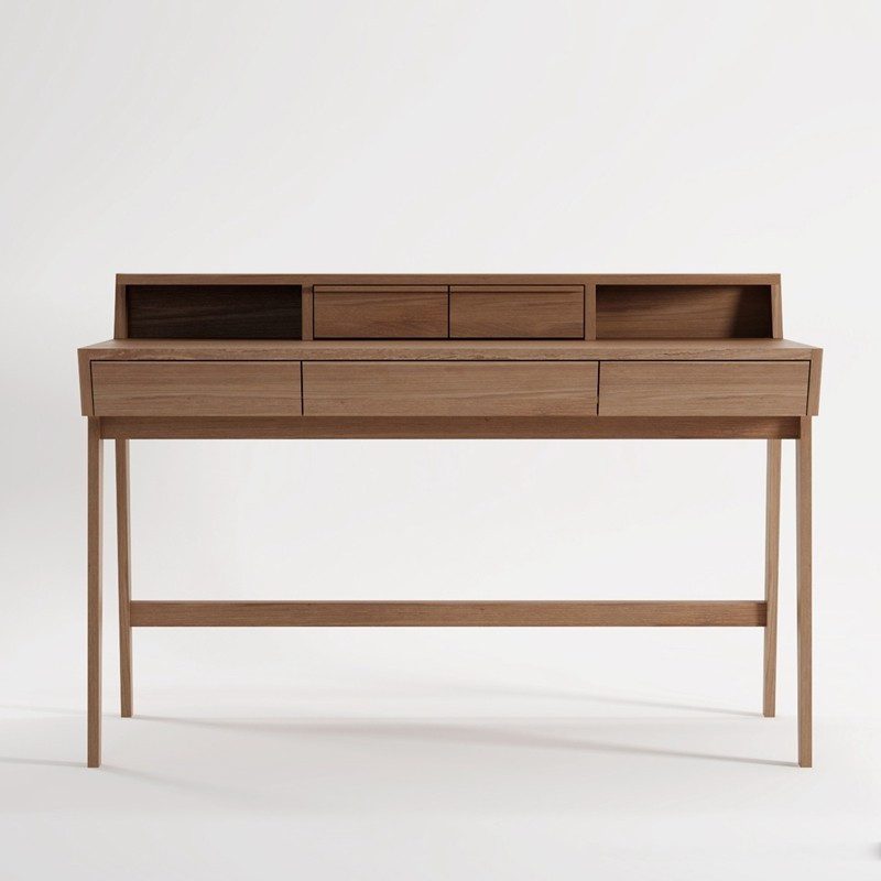 靈感來自 20 世紀斯堪地納維亞家具,其乾淨線條和柔和的邊角令人喜愛。在巴洛克時代,流行將書桌與收納空間結合在一起,多個抽屜是完美的作品。