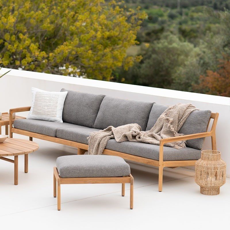 材質:FSC 環保認證 100% 柚木實木、抗UV防潑水面料(耐磨係數30000)、布套可機洗,亦可加購防雨罩、快乾泡棉