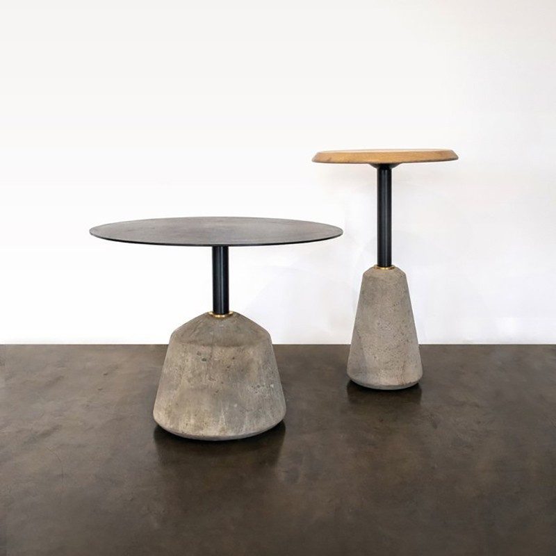 鐘罩型的水泥底座以黃銅鑲環銜接黑鋼柱,多了一點流暢感與細緻。一高一低、一寬一窄,推疊錯落的視覺,有種忠實的互補和陪伴。