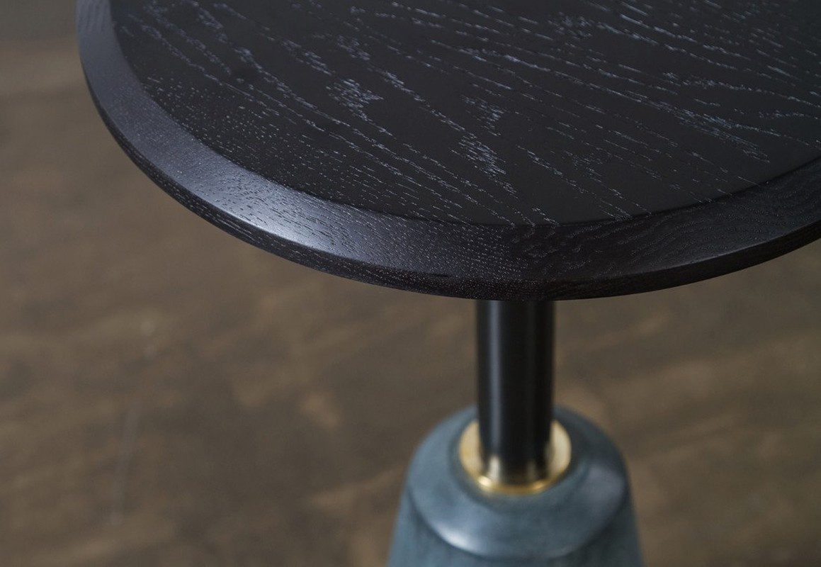 材質:煙燻橡木實木面板、黃銅、黑色烤漆鋼鐵桌柱、水泥拋光底