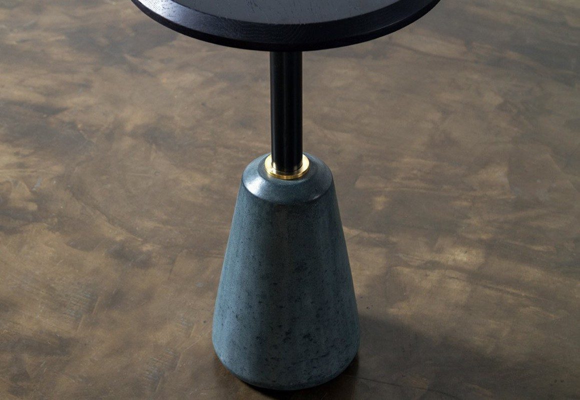 鐘罩型的水泥底座以黃銅鑲環銜接黑鋼柱,多了一點流暢感與細緻。一高一低、一寬一窄,推疊錯落的視覺,有種忠實的互補和陪伴。