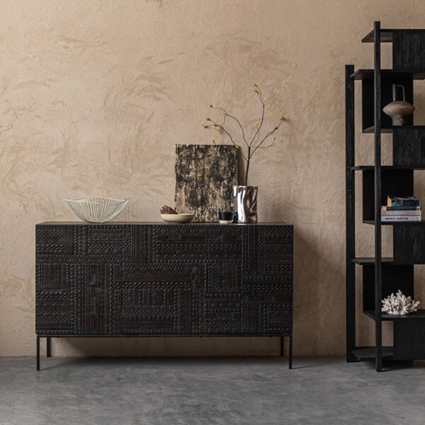 Ethnicraft 受到世界各地古老文化的啟發,將傳統民族藝術帶入生活中。 Ancestors 以優異雕刻工藝著稱的 Tabwa 命名,該系列靈感源自於對線性幾何圖愛的喜愛,因此作品中可以看到許多幾何形狀和符號。其中最引人注目的符號是三角形,象徵著生命的重生和延續。每個圖紋皆由工匠精心雕琢而成,變成了獨特的藝術品。