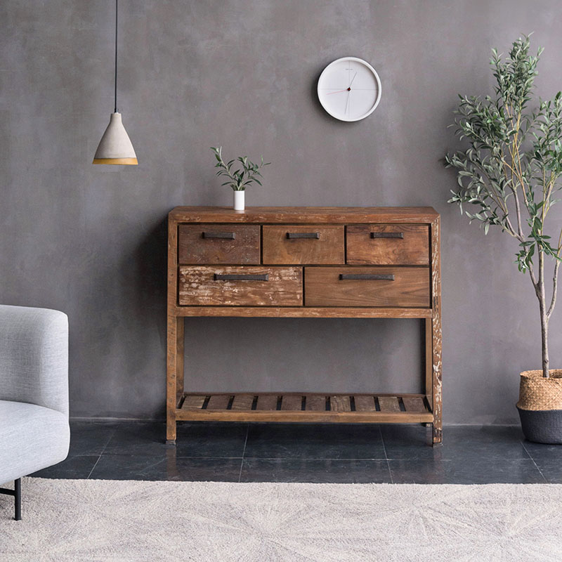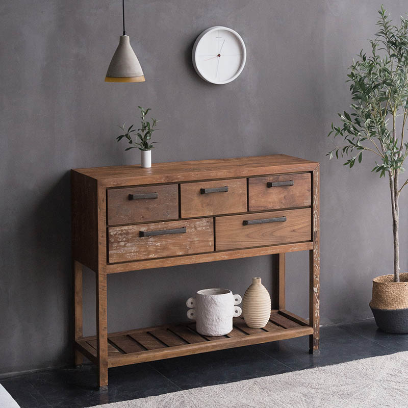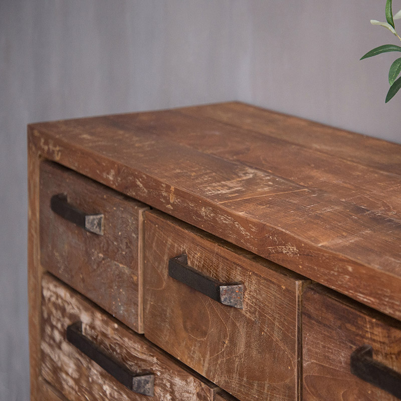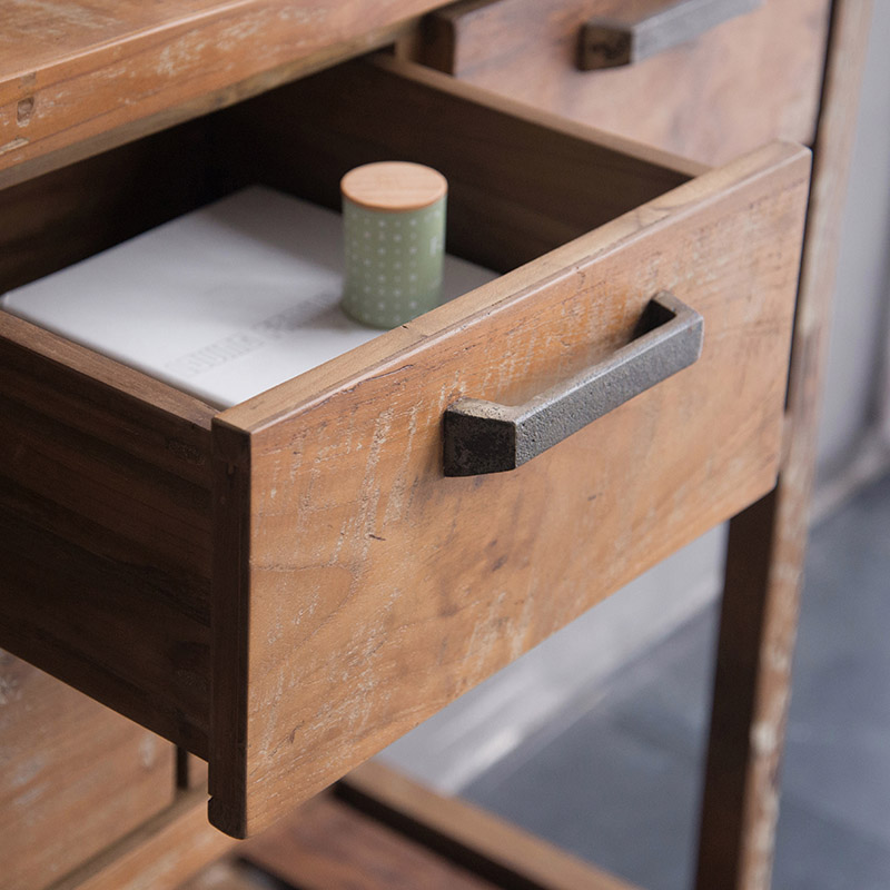 材質:回收老柚木實木、仿舊烤漆鐵件、環保水性塗層