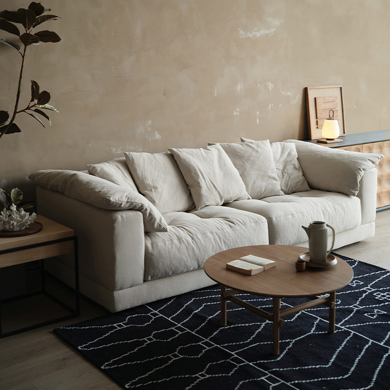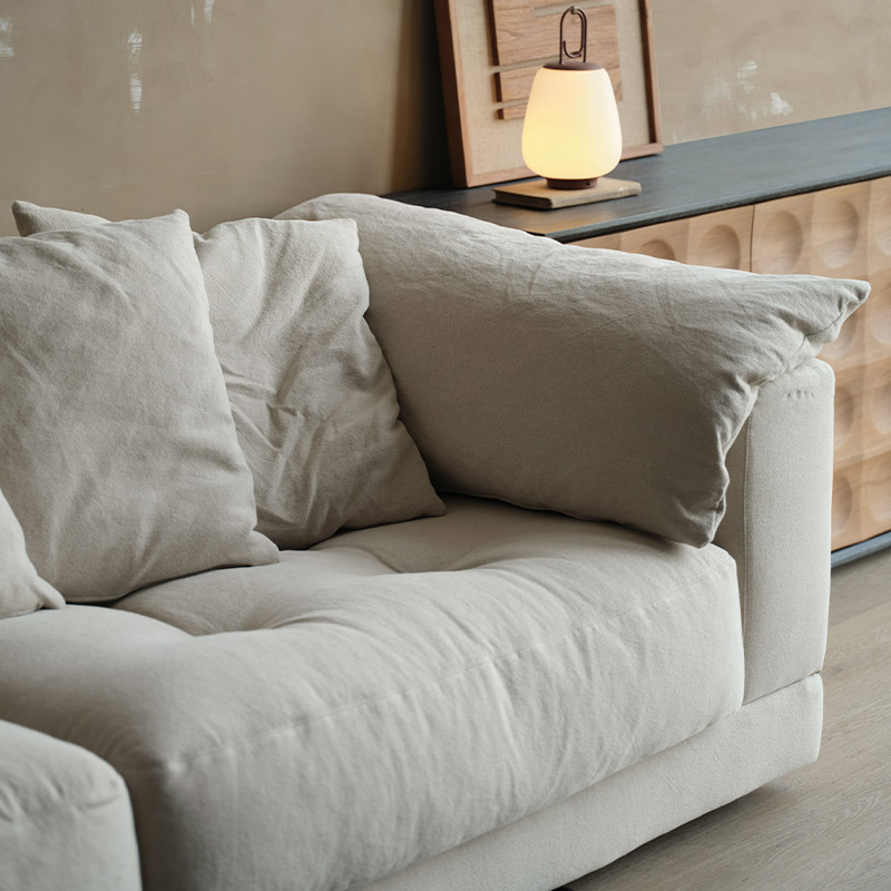 材質:55%亞麻+45%棉/高密度海綿+羽絨+聚酯纖維/松木+夾板