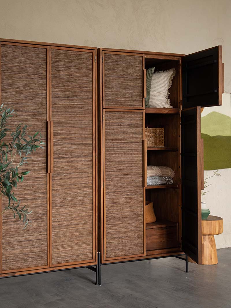 鍾情於印尼獨特文化的荷蘭設計師Raymond Davids,深深著迷於老房屋、老家具上傳統細膩的工藝技巧,以及久經風霜而刻畫出成熟、獨特木紋的老柚木,以這些充滿生命力與故事的元素,融入現代、簡潔的設計中,以繁複精巧的工序磨製,創造出質樸原野的家具系列。